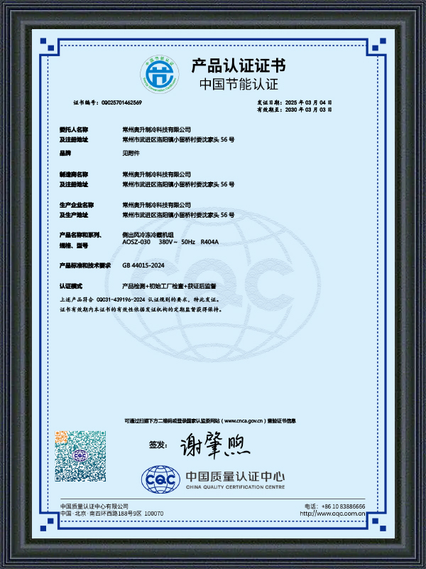 Changzhou Aosheng Refrigeration Technology Co., Ltd. es un fabricante profesional de unidades condensadoras que integra investigación y desarrollo, diseño, fabricación, ventas, instalación de ingeniería y servicio posventa. Las unidades condensadoras producidas por nuestra empresa se utilizan ampliamente en refrigeradores comerciales, cámaras frigoríficas y otros proyectos. Los accesorios originales de las nuevas unidades inteligentes provienen de reconocidas marcas nacionales e internacionales. El sistema de refrigeración es estable y confiable, con una tasa de fallas extremadamente baja. El proceso de pulverización y chapa de primera clase hace que el producto sea estético, sólido y duradero.